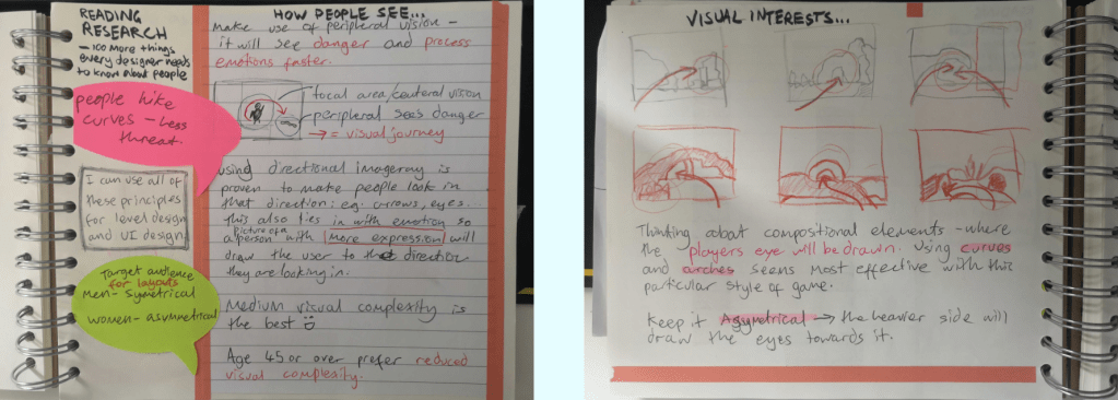 I realised from these initial sketches that I was struggling to place objects and specific interations into the level. So I began to research composition.