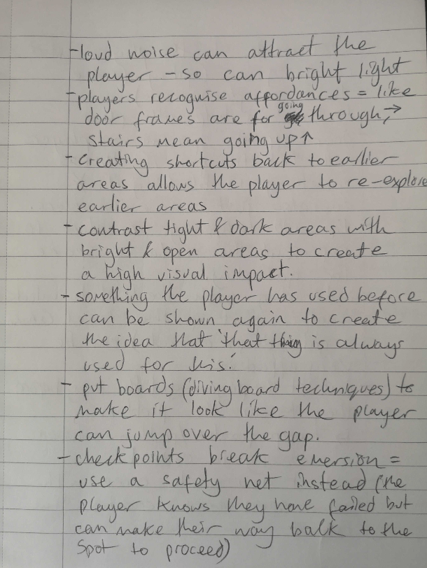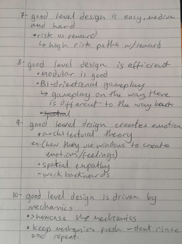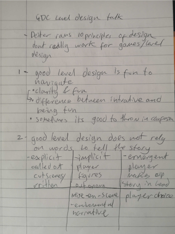 I also watched quite a few talks that specifically focused on level design to understand what industry practices are used and what is generally good/bad to do to the player.