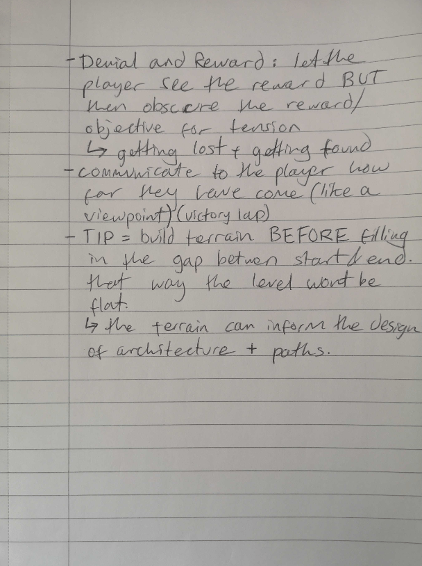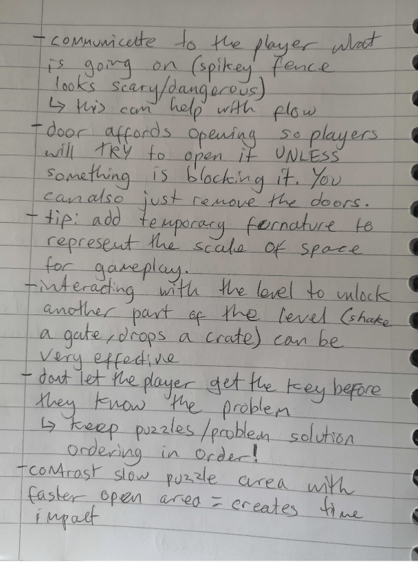 My notes on the Peter Field talk mainly highlighted good ways to create the level design and tips on how to maintain flow for the player.